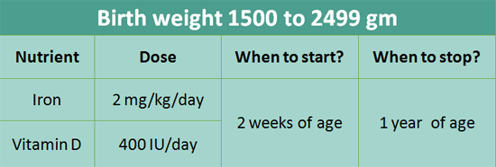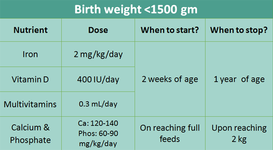 5. Supplements in <1500 g