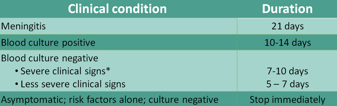 ► Based on culture and clinical signs, stop antibiotics at the