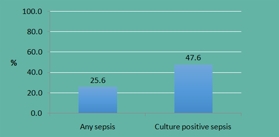 This figure shows case fatality of neonatal sepsis in hospitalized neonates as observed in a recently published Delhi Neonatal Sepsis Registry study in Lancet Global Health. A quarter of babies dies when there is any sepsis in the baby- either culture positive or culture negative.