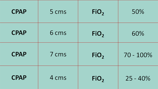 ► Every 1 cm decrease in CPAP, aim 10% in FiO2