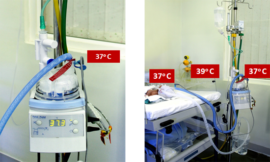 ► Temperature of inspiratory gases at 37o C